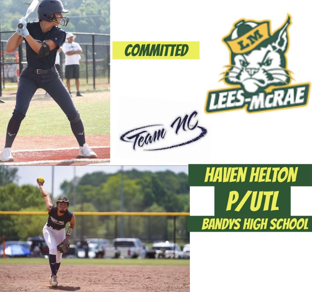 Congratulations to Haven Helton 2025 RHP|UT from Bandys High School (Catawba, NC) on her commitment to continue her academic and athletic journey with Lees-McRae College! Way to go Haven! #TeamNC #379andcounting